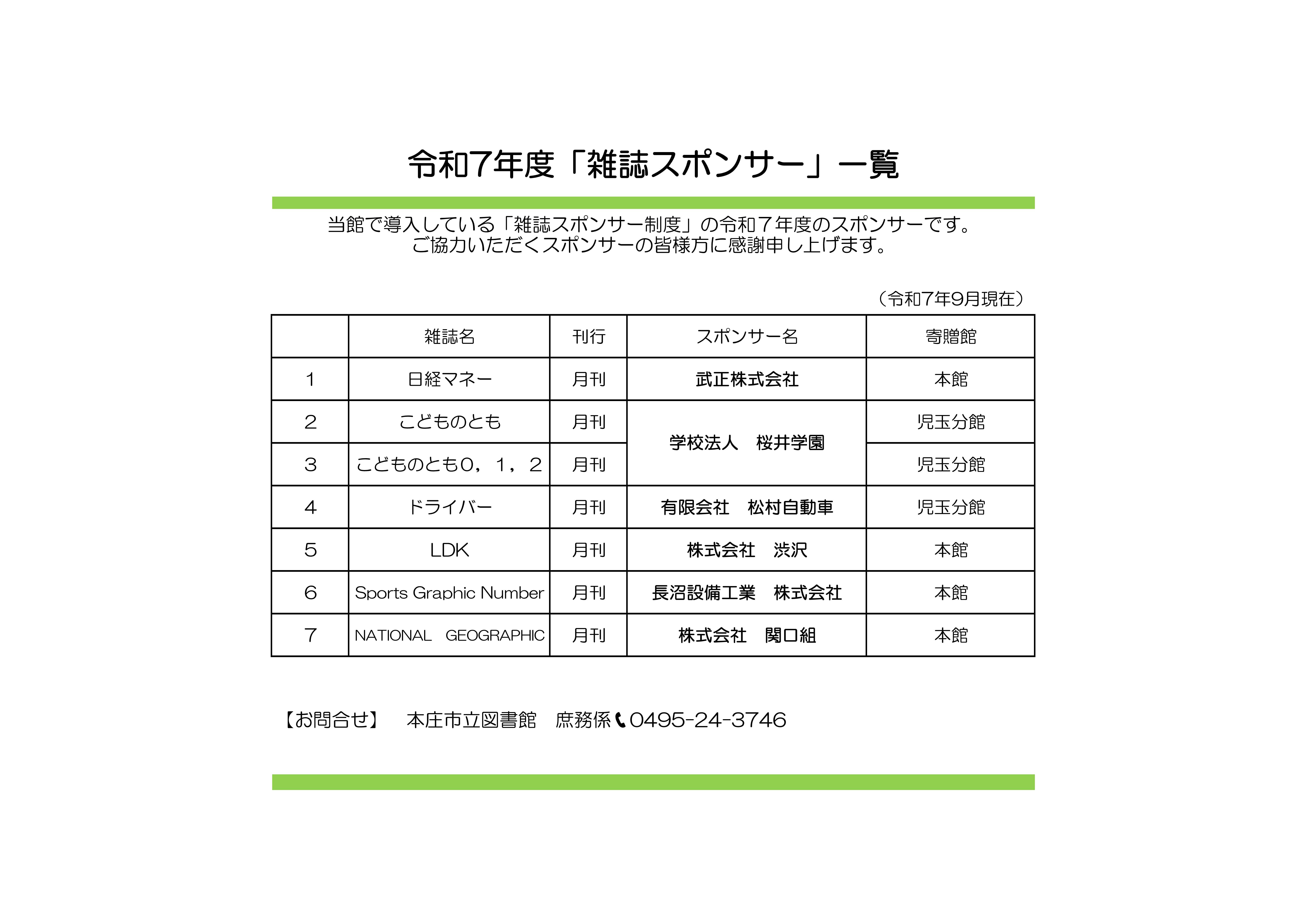1.本庄市立図書館雑誌スポンサー制度実施要綱(